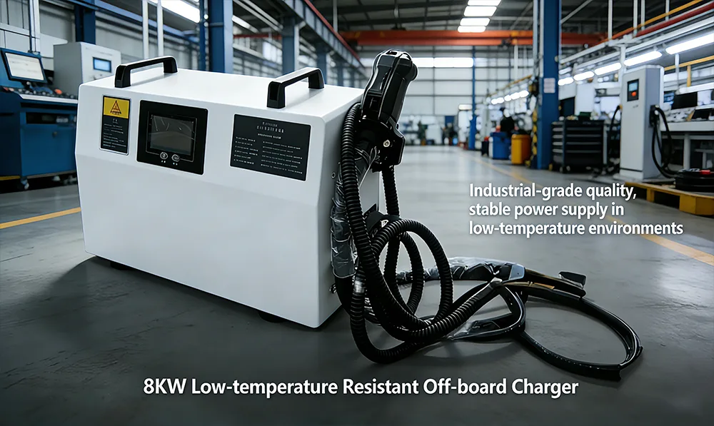 Pengecas Luar Papan Tahan Suhu Rendah 8KW ini menggunakan cip yang disesuaikan dengan suhu rendah dan struktur penebat haba & pelesapan haba yang cekap. Ia boleh beroperasi secara stabil dalam julat suhu yang luas dari -40 ℃ hingga 50 ℃ dalam senario seperti gudang luar di musim sejuk utara dan pelabuhan wilayah sejuk, dengan kadar kejayaan permulaan 100%.